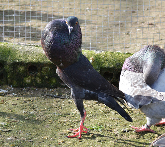 Экземпляры этого вида привлекают внимание благодаря вертикальной осанке, своими жемчужными глазами с красной каймой и круговой структуре перьев по обе стороны от шеи. Эта порода является очень красочной и набирает популярность в последние годы.